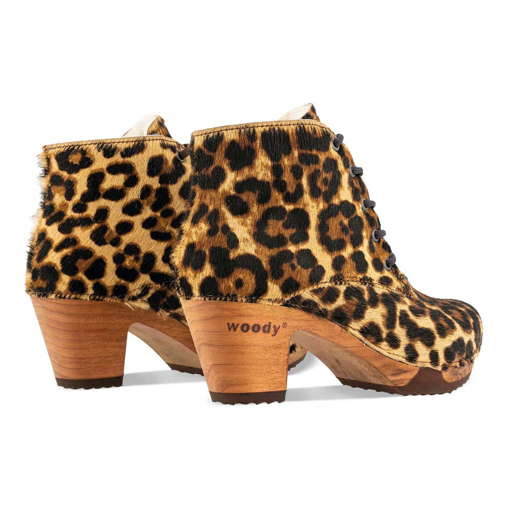 Damenclog Betty Fell Ankle Boots mit der biegsamen Holzsohle. Holzschuhe mit Fell - stylisch und urig zugleich - mit einem Absatz von 7,5 cm ein echter Hingucker! Betty Damen Fell Clog Ankle Boots Holzschuhe für Schmusetiger oder Raubkatze: Unsere Betty ist ein wandelbarer Allrounder – wortwörtlich. Denn bei dieser außergewöhnlichen Fellstiefelette ist jedes Stück ein Unikat. Da macht sogar die nasskalte Jahreszeit Freude. Mit Lammfellfutter gefüttert hält sie deine Füße unglaublich warm und kuschelig. Das Holzfußbett dieser Fellschuhe ist durch den Kautschuk biegsam. Somit ist bequemes, natürliches Abrollen möglich. Schnürsenkel helfen bei der individuellen Anpassung.