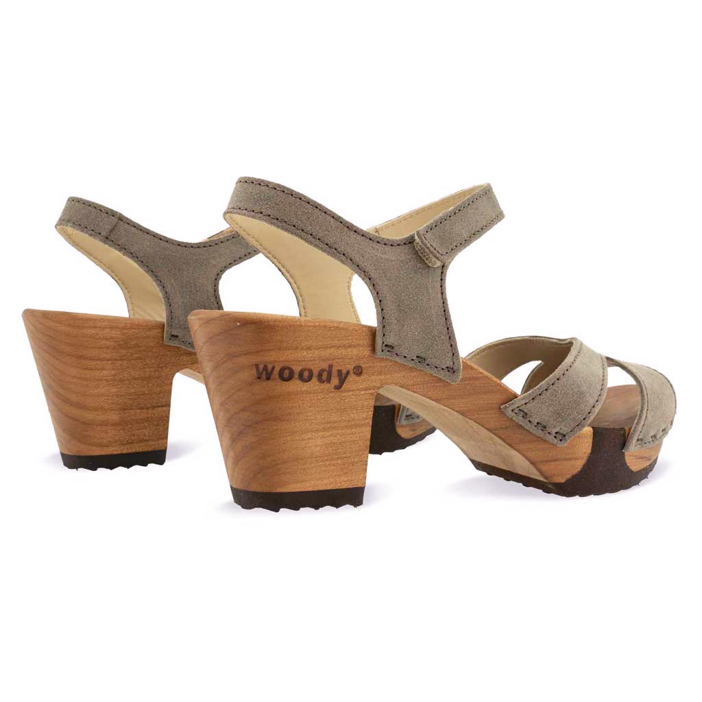 Holzsandale Carmen mit einem 7,5 cm Absatz von woody Schuhe. Lust auf einen sommerlichen Brunch oder einfach nur auf dieses tolle Gefühl bei jedem Schritt mit diesen Damen Clog Sandalen? Unsere elegante Carmen Damen Clog Sandalette mit flexibler, biegsamer Holzsohle fällt nicht nur optisch auf, sondern überzeugt besonders durch ihren Tragekomfort. Durch den dezenten Klett am Fesselriemen wird an- und ausziehen dieser Schuhe zur Leichtigkeit - zusätzlich sitzt die Holzsandalette fest am Fuß.