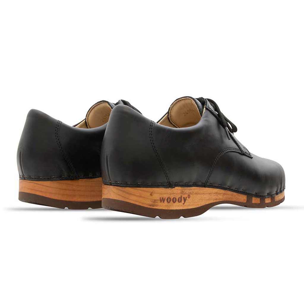 Herren Sneaker Jan - der Holzschuh mit ergonomischem Holzfußbett und der flexiblen, biegsamen Holzsohle - von woody® Schuhe. Unser Halbschuh Jan stellt die perfekte Fusion von Stil und Eleganz dar. Ein klassisch glänzend schwarzer Herrenschuh, passend vom stilvollen Freizeit-Look, über Büro und Business, bis hin zur Abendgarderobe. Durch die beliebte, biegsame Holzsohle mit ergonomischem Fußbett, ist der Jan Herren Clog Halbschuh auch für lange Tage eine großartige Wahl. Die hochwertige Verarbeitung per Hand, mit viel Liebe zum Detail, garantieren dir einen geschmackvollen Auftritt bei höchstem Komfort.
