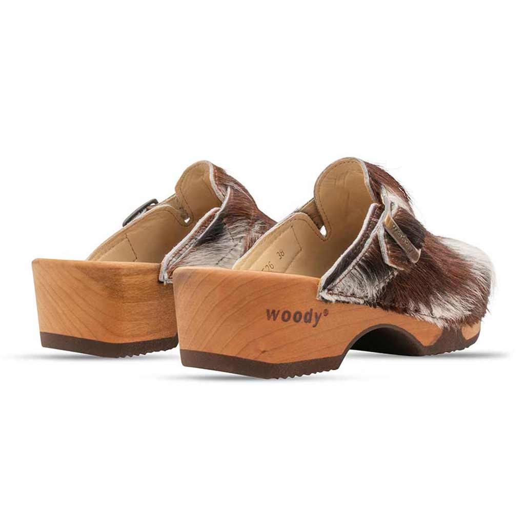 Holzschuhe mit Fell für Damen mit einem Absatz von 5 cm - das Schuh Modell Manu - mit der flexiblen, biegsamen Holzsohle. Unser Bestseller bei den Damen Clogs im Kuhfell Design. Modisch und lässig lässt sich unser Manu Damen Clog zu jedem Freizeit-Look aber auch mutiger kombinieren. Nicht nur modisch kann sie überzeugen, sondern auch mit ihrer Funktionalität und dem hohen Tragekomfort. Die besondere Holzsohle isoliert besonders gut gegen Kälte! Der Fellschuh Manu verfügt über einen praktischen Riemen mit einer bronzefarbigen Schnalle, mit dem sich der Schuh im Bereich des Spannes der Fußform anpassen lässt und so optimaler Halt gewährleistet wird. Gönne deinen Füßen etwas Gutes! Als robuster Fellschuh in stylischer Kuhfell Optik für Alltag, Job oder Freizeit - die Manu Damen Holzclogs im Felldesign besitzen durch die klassische Form den unverwechselbaren Charme - der diesen Damen Clog vielfältig einsetzbar macht.
