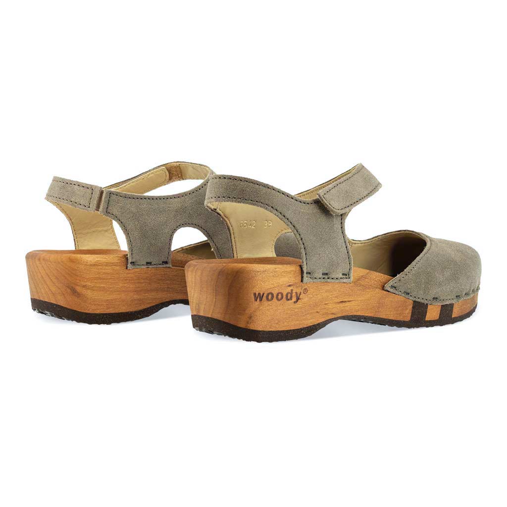 Holzsandale Nicole von woody® Schuhe. Modell Nicole – ein bequemes und dennoch modisches Schuhmodell überzeugt durch ihre besondere Passform. Mit seiner flachen, biegsamen Holzsohle (Absatzhöhe 4,5 cm) sorgt dieser Damen Clog für hohen Tragekomfort und bietet deinen Füßen festen Halt bei viel frischer Luft – ist überraschend leicht und angenehm zu tragen. Holzsandale Nicole ist vorne geschlossen und mit dem praktischen Klettverschluss in Sekundenschnelle angezogen. Der flexible Gummizug sorgt für angenehmen Tragekomfort, maximalen Halt, und ein flexibles Gefühl bei jedem Schritt.